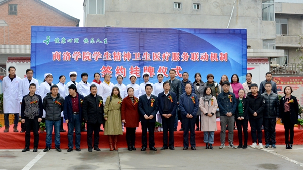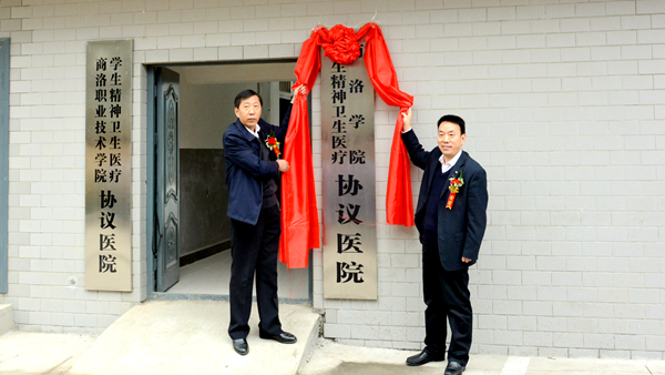 彭虎軍與孫衛(wèi)民簽訂了《商洛學(xué)院與商洛市民政局復(fù)退軍人精神病醫(yī)院合作協(xié)議》,共同為“商洛學(xué)院學(xué)生精神衛(wèi)生醫(yī)療協(xié)議醫(yī)院”揭牌。