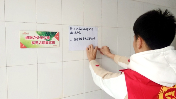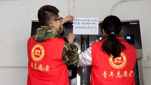 青年志愿者協(xié)會開展“珍惜水資源,為生命留一條清流”活動?;顒又校驹刚邆兎謩e在教學樓各處飲水機、宿舍樓水龍頭旁張貼珍惜水資源的愛心標語,倡導師生們節(jié)水愛水,保護我們賴以生存的水資源。