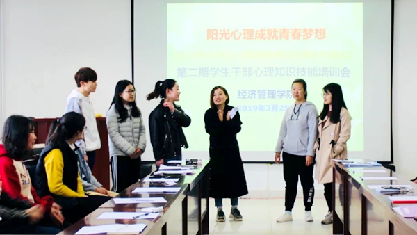 各二級(jí)學(xué)院也積極響應(yīng),陸續(xù)舉行了各自院部的心理健康教育宣傳季啟動(dòng)儀式。其中,健康學(xué)院、生物學(xué)院、藝術(shù)學(xué)院、人文學(xué)院開展了以“珍愛生命 激揚(yáng)青春”為主題的宣誓簽名活動(dòng);經(jīng)管學(xué)院為學(xué)生干部開展了心理知識(shí)技能培訓(xùn);建工學(xué)院制作了精美展板向?qū)W生宣傳心理季活動(dòng);馬克思主義學(xué)院組織師生集體觀看了名為《我有一只黑狗》的心理宣傳片。