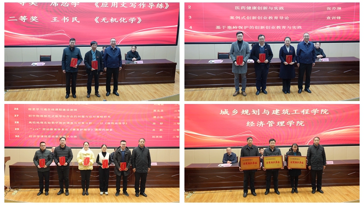 大会表嘪了我?023q教育教学研讨会优秀论文、优Ul织单位、陕西省高等教育优秀教材奖、陕襉K校创新创业课E、第二批陕西省课E思政C评、陕西本U教育教学改革研I目、第五届陕西本科高校教师教学创新大赛、陕襉K校思政评评思政“大l兵”省U展C活动获奖教师?/p>