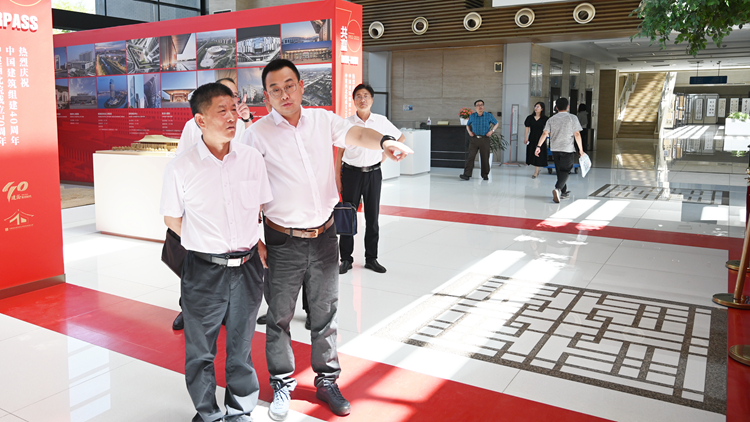会前Q张志昌、范C、郭瑾一行在中国建筑西北设计研究院有限公司相兌责h的陪同下参观?0周年展厅和绿色能源院?/p>