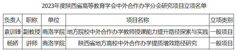 q日Q陕西省高等教育学会(x)公布?023q陕西省高等教育学会(x)中外合作办学分会(x)研究目立项l果Q我校获一般项目立?V这是我校首ơ获Ҏ(gu)c项目立V?/p>