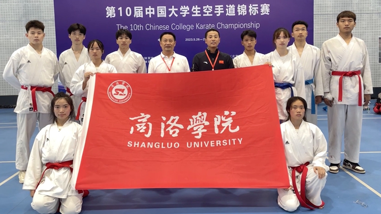 桑國鵬:學校的空手道隊成立于2019年10月1日。那時我也剛剛來到學校工作,就想著把個人作為運動員在國家隊、省隊學到的東西傳遞給更多的學生,于是在學校領導和體育教學研究部的支持下組建了校隊。當時面臨的一個很大的問題是團隊成員都不是體育生,甚至都沒有接觸過空手道,身體素質各方面也達不到要求,可想而知這四年來的訓練對每個成員來說有多辛苦。在這四年中,團隊以賽促學,先后舉辦并參加了2020年和2021年商洛學院空手道錦標賽,在2020年首次參加全國大學生跆拳道錦標賽線上賽并獲得了全國三等獎。隨著疫情的結束,得知第十屆中國大學生空手道錦標賽在河北保定舉行,我們趕緊加快訓練的節(jié)奏。三月份提前進入集訓階段,每天保證大約六到八小時的訓練量,五一假期也在訓練中度過,后期還主動與西安體育學院高水平運動員進行技術交流切磋,以此提高競技水平……點滴的訓練過程都為這次比賽的優(yōu)秀成績奠定了堅實的基礎。