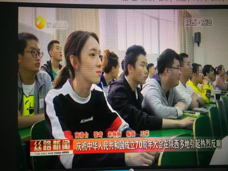 陜西電視臺《陜西新聞聯(lián)播》《絲路新聞》頻道于10月3日,商洛電視臺《商洛新聞聯(lián)播》頻道于10月1日,分別對我校師生集體收看慶祝中華人民共和國成立70周年大會、閱兵式、群眾游行直播情況進行了報道。收看現(xiàn)場,師生們激情澎湃,教室里不時響起熱烈掌聲,大家都為祖國的日益強大感到無比振奮和自豪。節(jié)目組現(xiàn)場采訪了我校黨委副書記彭虎軍、學生許文佳和孫增印。彭虎軍說:今天是祖國母親70歲生日,內(nèi)心非常高興,也非常激動,剛才聆聽了習近平總書記的重要講話,覺得很受鼓舞,堅定了信心,催人奮進。許文佳說:給我印象最深刻的是飛機的表演,我們已經(jīng)不是當時剛開國典禮時僅存的那幾個飛機,我們現(xiàn)在有高科技的軍事裝備,我們的國家也越來越強大,在世界上展示著大國的風采。孫增印說:在這個特殊的日子,我想祝愿我們的祖國母親生日快樂,祝愿我們的國家更加繁榮昌盛。