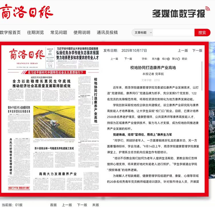 如今,從培育本土人才到攻堅(jiān)產(chǎn)業(yè)難題,從深耕科研轉(zhuǎn)化到服務(wù)基層民生,健康管理學(xué)院以“黨建紅”為引領(lǐng),以“康養(yǎng)綠”為底色,在秦嶺山間的養(yǎng)老院、企業(yè)車間、社區(qū)廣場(chǎng),都留下了校地協(xié)同推進(jìn)康養(yǎng)事業(yè)的扎實(shí)足跡。