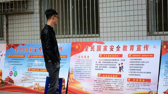 商洛學(xué)院學(xué)生認(rèn)真學(xué)習(xí)展板上的國家安全知識