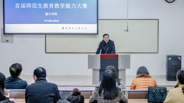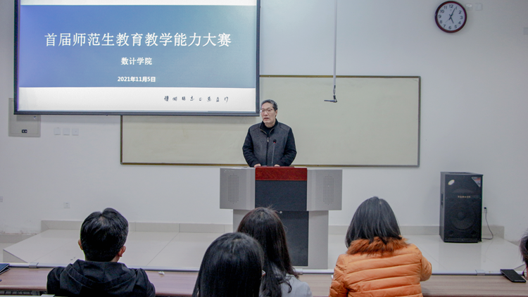 為進(jìn)一步強(qiáng)化師范生教學(xué)基本功和教學(xué)能力,培養(yǎng)高素質(zhì)專業(yè)化創(chuàng)新型教師隊伍,彰顯師范專業(yè)特色,11月5日下午,數(shù)計學(xué)院舉辦了數(shù)學(xué)與應(yīng)用數(shù)學(xué)專業(yè)首屆師范生教育教學(xué)能力大賽。數(shù)計學(xué)院院長李超出席大賽,學(xué)校教學(xué)督導(dǎo)團(tuán)專家張曉虎、王建芳、李亞文、房琳及數(shù)計學(xué)院數(shù)學(xué)與應(yīng)用數(shù)學(xué)專業(yè)相關(guān)教師擔(dān)任大賽評委。