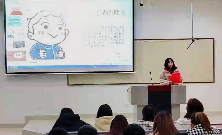 會(huì)上,主講學(xué)生圍繞端正考試態(tài)度、遵守考試制度、嚴(yán)守考場(chǎng)紀(jì)律等方面進(jìn)行了誠(chéng)信教育宣講,呼吁同學(xué)們嚴(yán)于律己、誠(chéng)信應(yīng)考,在各類(lèi)考試中將誠(chéng)信付諸于實(shí)際行動(dòng)。學(xué)生李歡歡結(jié)合學(xué)生手冊(cè)中關(guān)于考試違紀(jì)的處理辦法,重點(diǎn)介紹了考試中的注意事項(xiàng)。學(xué)生孫靜怡以高考違紀(jì)、研究生考試作弊等真實(shí)事件為案例,向大家深刻剖析了考試違紀(jì)的危害和法律后果。會(huì)議最后,全體同學(xué)起立集體宣誓,誠(chéng)信考試、誠(chéng)實(shí)做人,爭(zhēng)做新時(shí)代合格大學(xué)生。