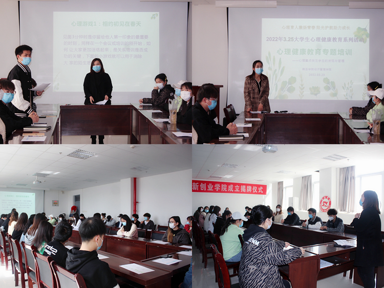 啟動(dòng)儀后,國(guó)家三級(jí)心理咨詢師,輔導(dǎo)員任倩面向全院心理委員開展了“心理育人激揚(yáng)青春 陽(yáng)光護(hù)航助力成長(zhǎng)”主題培訓(xùn)。培訓(xùn)現(xiàn)場(chǎng),任倩通過(guò)專題講解、心理游戲、現(xiàn)場(chǎng)互動(dòng)等形式和學(xué)生進(jìn)行交流溝通,了解同學(xué)們心理狀況。同學(xué)們紛紛表示以后將會(huì)多關(guān)注心理健康方面知識(shí),保持積極健康心態(tài)。