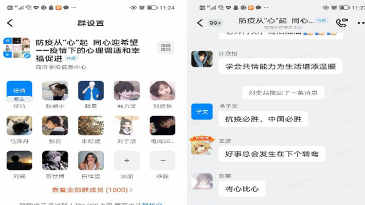 任倩老師分別從“感受樂(lè)觀的力量”、“ABCDE樂(lè)觀思維模式”、“心理調(diào)適建議”三個(gè)方面結(jié)合學(xué)生學(xué)習(xí)生活現(xiàn)狀,為1000余名在線師生進(jìn)行了生動(dòng)的心理健康知識(shí)講解。就疫情突發(fā),校園臨時(shí)封閉管理期內(nèi)可能產(chǎn)生的焦慮多疑、惶恐不安、悲傷抑郁等心理問(wèn)題提出了調(diào)試方法。通過(guò)線上互動(dòng)讓大家了解“共情”,喚醒“共情”,傳遞“共情”,以積極健康的心態(tài)面對(duì)生活,共克時(shí)艱!