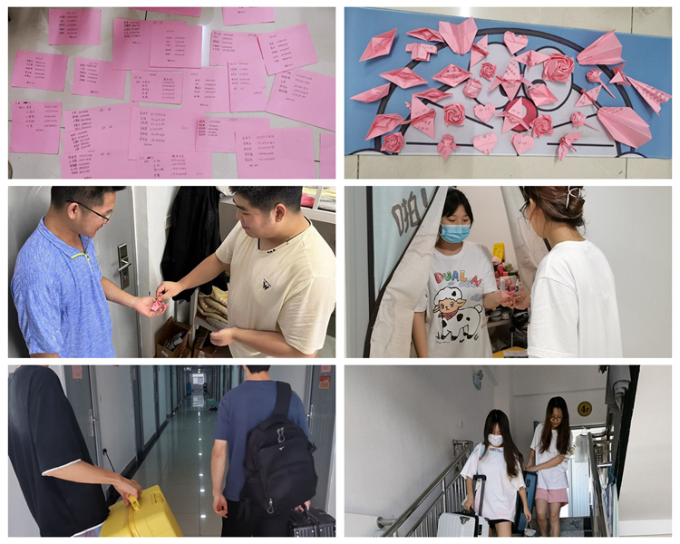 在即將踏上新的人生征途時(shí),畢業(yè)生們收到了來自低年級(jí)學(xué)弟學(xué)妹們的神秘禮物——一張張用心準(zhǔn)備的志愿服務(wù)卡??ㄆ显敿?xì)標(biāo)注著班級(jí)、姓名和聯(lián)系方式,并折疊成各式各樣的手工品呈現(xiàn)在畢業(yè)生眼前。有“飛機(jī)巨輪、鮮花糖果、蜻蜓蜜蜂”,寓意著祝君啟航、甜蜜、翱翔。畢業(yè)生可隨時(shí)撥打電話,志愿服務(wù)隊(duì)能為其提供物品整理,行李搬運(yùn),送站等服務(wù)。