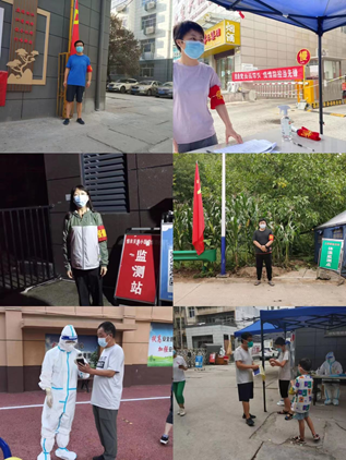 我院彭永鑫老師、楊全老師住在南院家屬區(qū),主動(dòng)承擔(dān)南院的核酸檢測(cè)志愿服務(wù)工作,楊全老師還動(dòng)員自己大學(xué)暑假在家的兒子一起參加核酸檢測(cè)志愿服務(wù)。劉曉民、李永華、張潔老師分別在自己的小區(qū)承擔(dān)起巡邏、信息登記、核酸檢測(cè)、值班值守等工作。輔導(dǎo)員韓威,身在老家洛南,也積極投身村里的疫情防控工作,協(xié)助所在村委會(huì)工作人員進(jìn)行入戶核酸采樣,并主動(dòng)承擔(dān)卡點(diǎn)值班任務(wù)。