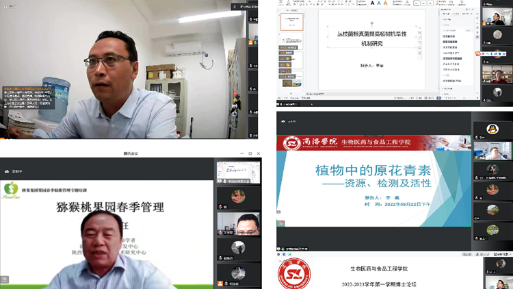 9月22日,生物醫(yī)藥與食品工程學(xué)院博士論壇2022年首場(chǎng)學(xué)術(shù)交流活動(dòng)在云端順利舉行。本次論壇特邀我院2位客座教授——西北大學(xué)博士生導(dǎo)師趙桂仿,陜西省農(nóng)村科技開(kāi)發(fā)中心、陜西省獼猴桃工程技術(shù)研究中心主任雷玉山研究員蒞臨云端全程指導(dǎo)。生物學(xué)院院長(zhǎng)王學(xué)軍出席論壇活動(dòng)。生物學(xué)院全體教師及部分畢業(yè)班學(xué)生在線上參加論壇。論壇由副院長(zhǎng)何念武主持。