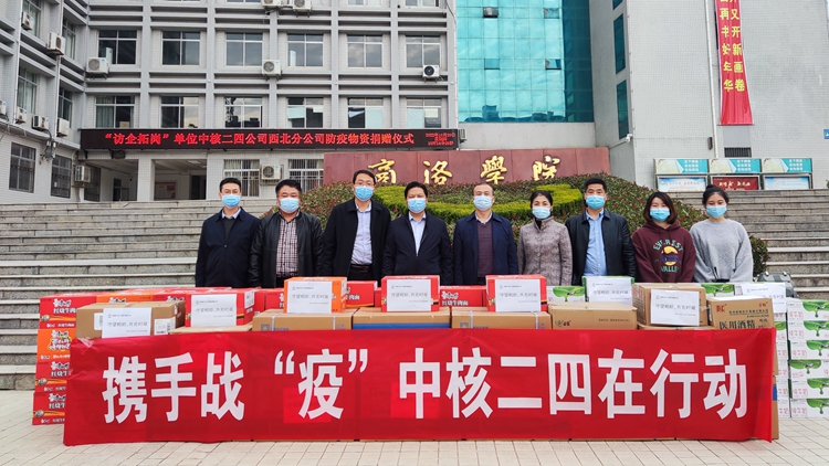 10月20日,建工學(xué)院“訪企拓崗”專項(xiàng)行動聯(lián)系單位中國核工業(yè)二四建設(shè)有限公司西北分公司為支持我校疫情防控工作,向我校捐贈了一批酒精、洗手液、口罩等防疫物資。校黨委辦公室·院長辦公室、學(xué)生處、后勤保障處、建工學(xué)院等部門相關(guān)負(fù)責(zé)人參加捐贈儀式。