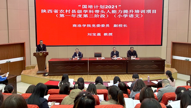 4月15日,由我校承擔(dān)的“國培計劃(2021)”——陜西省農(nóng)村縣級學(xué)科帶頭人能力提升培訓(xùn)項目(小學(xué)語文)開班典禮在圖書館報告廳隆重舉行。副校長劉寶盈出席典禮。繼續(xù)教育學(xué)院院長付軍昌,學(xué)院相關(guān)工作人員及來自全省近50名小學(xué)語文學(xué)科骨干教師參加了培訓(xùn)。開班典禮由繼續(xù)教育學(xué)院副院長任新山主持。
