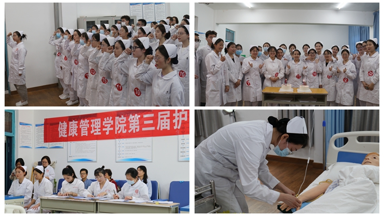 活動中,全體師生一起重溫南丁格爾誓詞,并莊嚴(yán)宣誓。學(xué)院為未來的白衣天使們準(zhǔn)備了節(jié)日蛋糕,共同慶祝第112個國際護(hù)士節(jié)。