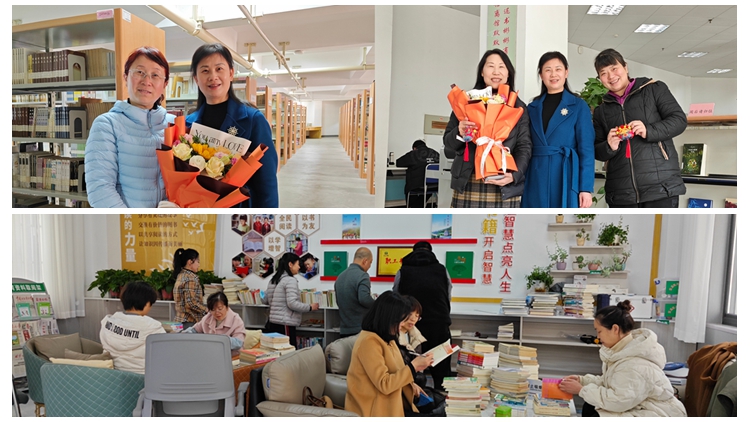 3月8日上午,圖書館副館長郭莉走進(jìn)庫室一線,為各位女館員送去節(jié)日的溫馨祝福。3月8日下午,圖書館11名館員走進(jìn)商州區(qū)東店子社區(qū)圖書室,開展第二批文化志愿服務(wù)進(jìn)社區(qū)活動,共同度過一個書香四溢、有意義的節(jié)日。文化服務(wù)志愿活動現(xiàn)場花香四溢,書香濃郁,各位館員分工明確,工作銜接順暢,高效地完成了近兩千冊圖書的加工上架。