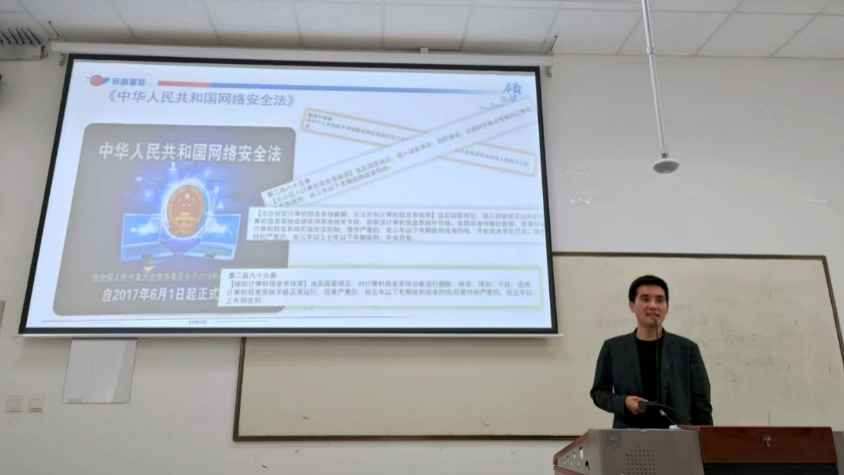 講座共分為“網(wǎng)絡安全熱點事件”“信息安全與國家戰(zhàn)略”“中華人民共和國網(wǎng)絡安全法”“信息安全等級保護測評”“啟明星辰核心業(yè)務”“網(wǎng)絡安全人才現(xiàn)狀”六個部分內容。孫明從近期發(fā)生的幾起重大隱私泄露事件,包括數(shù)據(jù)泄露、個人信息被非法買賣等熱點新聞著手,使在場師生意識到網(wǎng)絡安全問題的普遍性、嚴重性、緊迫性。同時,他對《中華人民共和國網(wǎng)絡安全法》進行了深入解讀,詳細介紹了法律的主要條款、立法目的和實施意義。最后,孫明分析了當前網(wǎng)絡安全人才的市場需求、培養(yǎng)現(xiàn)狀及發(fā)展趨勢。他指出,隨著網(wǎng)絡技術的快速發(fā)展,網(wǎng)絡安全人才短缺的問題日益凸顯。他鼓勵在座的學生們積極投身網(wǎng)絡安全領域,提升自身技能,為國家的網(wǎng)絡安全事業(yè)貢獻力量。同時,他還分享了啟明星辰在人才培養(yǎng)和職業(yè)發(fā)展方面的舉措,為學生們指明了前進方向。