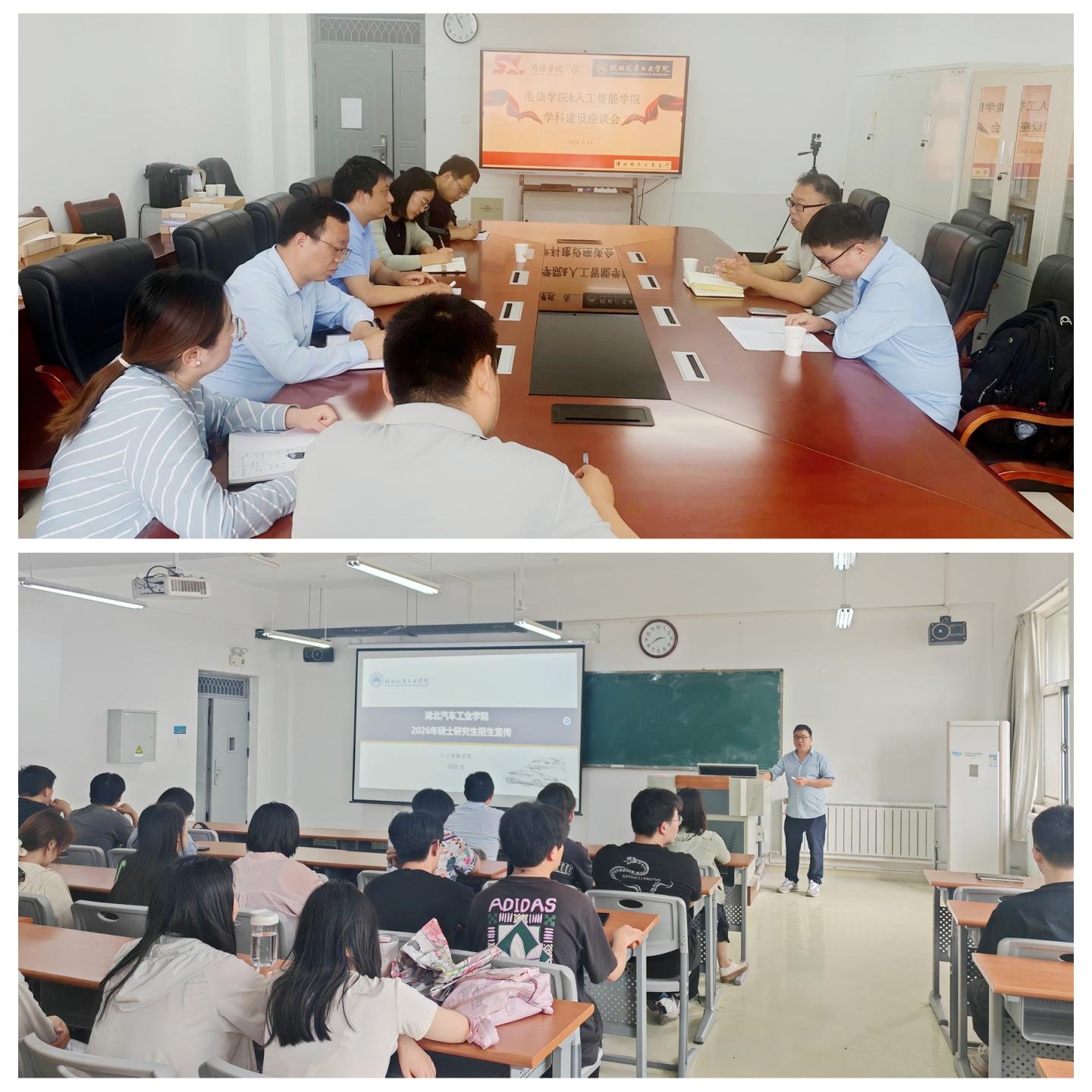 5月14日,湖北汽車工業(yè)學(xué)院人工智能學(xué)院副院長(zhǎng)周原一行來訪電信學(xué)院,開展學(xué)科建設(shè)交流及碩士研究生招生宣講活動(dòng)。電子信息與電氣工程學(xué)院黨委書記袁訓(xùn)鋒、院長(zhǎng)陳垚、副院長(zhǎng)李亞文及教師代表參與座談。