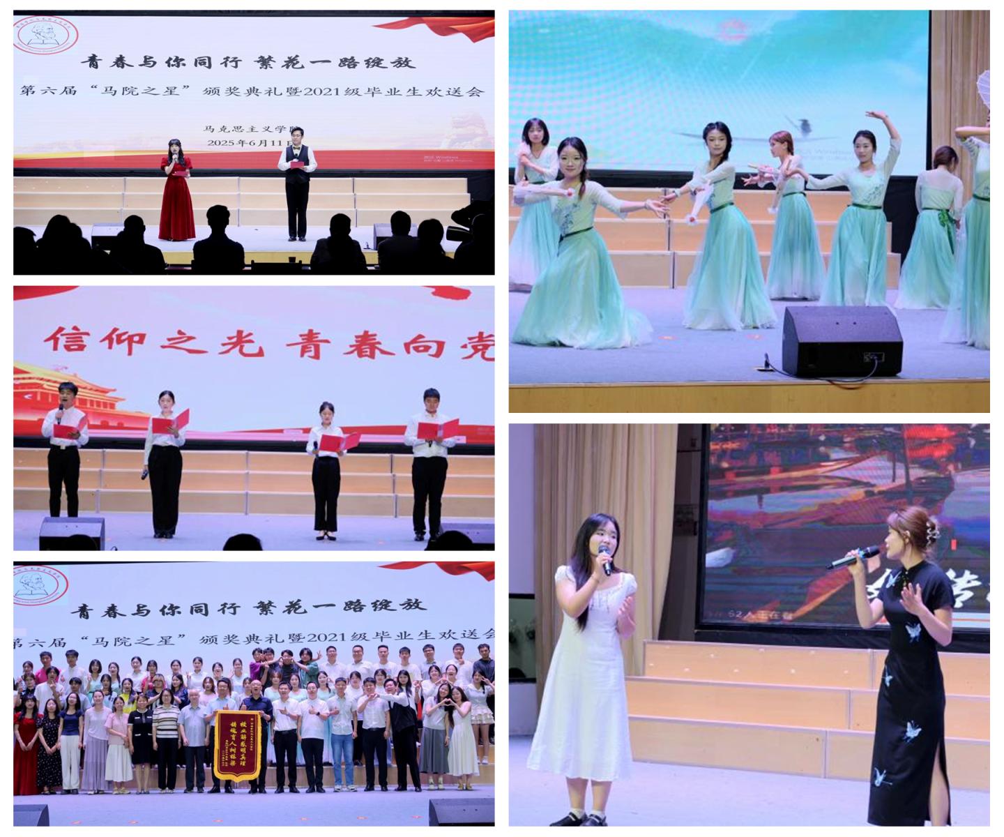 6月11日,馬克思主義學(xué)院在新青年大學(xué)生活動中心舉辦“青春與你同行 繁華一路綻放”第六屆“馬院之星”頒獎典禮暨2021級畢業(yè)生歡送會,學(xué)院師生齊聚一堂,為即將踏上新征程的2021級畢業(yè)生送上祝福。