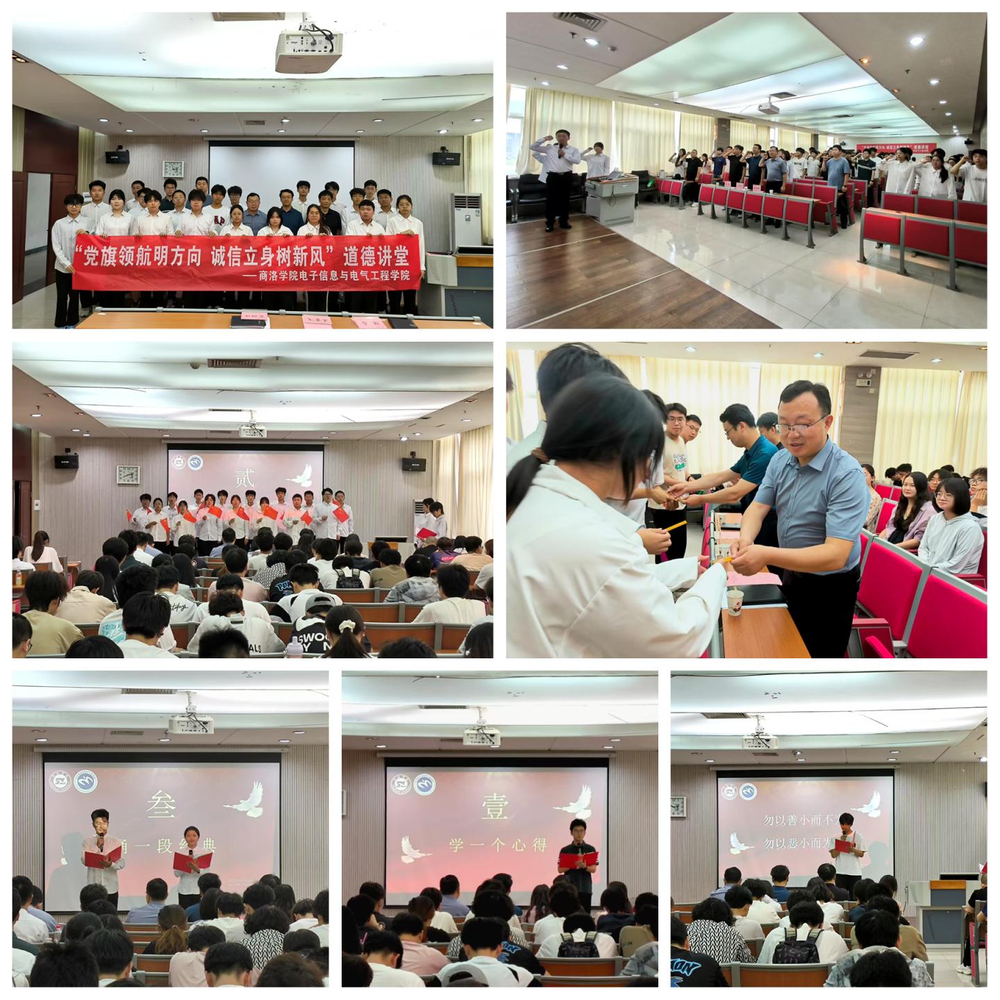 為弘揚(yáng)誠(chéng)信美德,筑牢理想信念根基,6月18日,電信學(xué)院舉辦“黨旗領(lǐng)航明方向 誠(chéng)信立身樹(shù)新風(fēng)”主題道德講堂活動(dòng)。校黨委委員、宣傳部部長(zhǎng)王霄飛,電信學(xué)院黨委書記袁訓(xùn)鋒、院長(zhǎng)陳垚,學(xué)院全體黨支部書記、輔導(dǎo)員、學(xué)生代表170余人參加活動(dòng)。