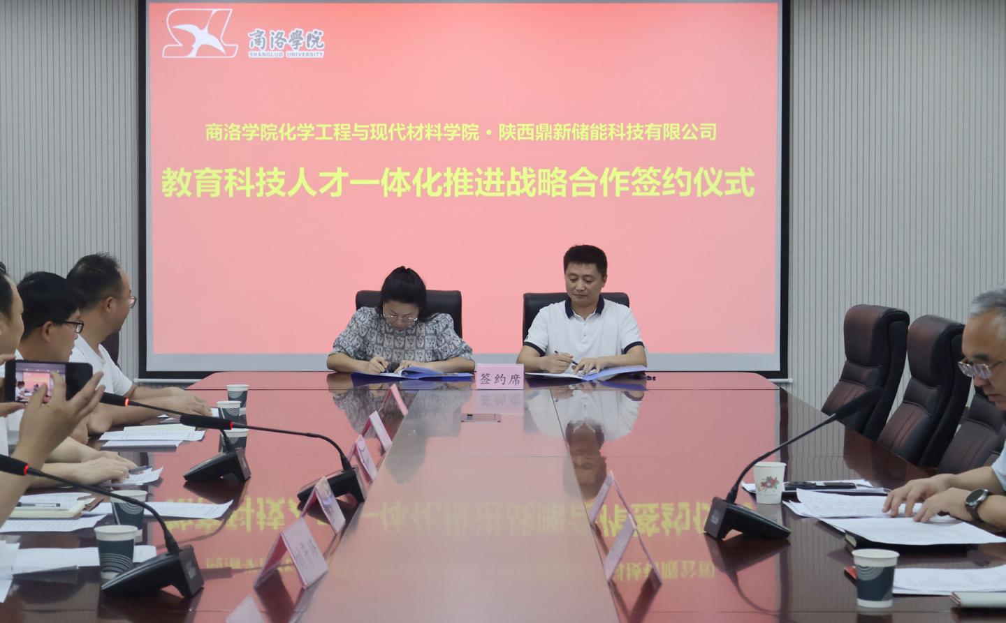為深化產(chǎn)教融合、推進人才訂單式培養(yǎng),6月24日,化材學院與陜西鼎新儲能科技有限公司簽署《教育科技人才一體化推進戰(zhàn)略合作框架協(xié)議》。簽約儀式上同時舉行了由鼎新公司贊助的“鼎新杯”商洛學院第三屆節(jié)能減排社會實踐與科技競賽頒獎儀式。