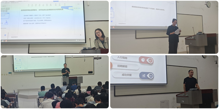 分享會上,韓杏結(jié)合自身成長及擔(dān)任搜狐暢游高級項目經(jīng)理的相關(guān)經(jīng)歷,圍繞“職業(yè)規(guī)劃的錨點與動態(tài)調(diào)整”展開分享,她強(qiáng)調(diào)職業(yè)規(guī)劃并非一成不變的“死計劃”,而要在實踐中根據(jù)自身優(yōu)勢與行業(yè)趨勢靈活調(diào)整。孟丹梅帶來了“專業(yè)學(xué)習(xí)與學(xué)歷提升的雙向賦能”主題分享,她介紹了自己考取廣西大學(xué)碩士研究生的備考經(jīng)驗及在聯(lián)想集團(tuán)、國網(wǎng)商洛供電公司的工作歷程,建議大家盡早明確目標(biāo),做好職業(yè)規(guī)劃。史曉東則以“從校園到名企:實習(xí)與就業(yè)的探索之路”為主題,分享了自己在小米公司、中國聯(lián)通商洛市分公司的職業(yè)經(jīng)歷。強(qiáng)調(diào)實習(xí)是大學(xué)生接觸職場的重要窗口,建議學(xué)弟學(xué)妹們在校期間積極爭取優(yōu)質(zhì)實習(xí)機(jī)會,提前了解行業(yè)動態(tài)。在三位校友分享后,搜狐HR張恒從企業(yè)招聘視角,解讀“互聯(lián)網(wǎng)行業(yè)人才需求與能力要求”。他建議學(xué)生在校期間,通過參加學(xué)科競賽、社團(tuán)項目、科研實踐等方式,全方位鍛煉自己。