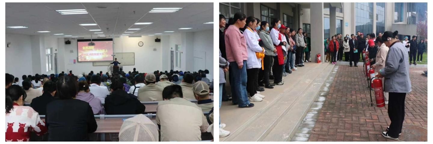 商州區(qū)消防站陳超站長結(jié)合近期常見火災(zāi)典型案例,講解了學(xué)校食堂、公寓、快遞服務(wù)中心等地火災(zāi)隱患的排查、初期火災(zāi)撲救方法、火場逃生自救技巧以及消防器材的正確使用規(guī)范。生動的講解和互動問答讓全體從業(yè)人員們對消防安全有了更系統(tǒng)、更深刻的認識。理論培訓(xùn)結(jié)束后,陳超站長帶領(lǐng)培訓(xùn)人員在室外進行滅火器實操演練。他現(xiàn)場演示了干粉滅火器和滅火毯的操作方法,并指導(dǎo)從業(yè)人員分批次體驗滅火過程,讓消防安全知識真正入腦入心。