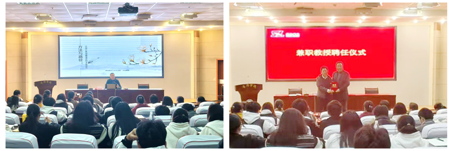 11月10日晚,陜西師范大學(xué)文學(xué)院教授、國家社科基金重大項目首席專家王偉應(yīng)邀來校,為人文學(xué)院師生作“中國古典詩歌鑒賞的多維視角”專題學(xué)術(shù)報告。人文學(xué)院院長張文諾為王偉教授頒發(fā)兼職教授聘書。作為“商苑金秋學(xué)術(shù)季”的又一場學(xué)術(shù)盛宴,吸引了我校近200名師生現(xiàn)場聆聽報告。