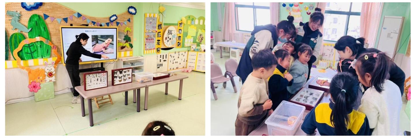 活動中,李麗以“神秘的爬行動物”為切入點(diǎn),通過生動的語言和直觀的現(xiàn)場展示,向小朋友們介紹了蜥蜴的外形特征、生活習(xí)性和生存本領(lǐng)。在昆蟲認(rèn)知環(huán)節(jié),李麗現(xiàn)場展示了包括蝴蝶、甲蟲、蜻蜓等多種昆蟲標(biāo)本,并引導(dǎo)小朋友們觀察標(biāo)本形態(tài)、解答相關(guān)問題。小朋友們認(rèn)真觀察標(biāo)本、分享感受,現(xiàn)場互動氛圍熱烈。