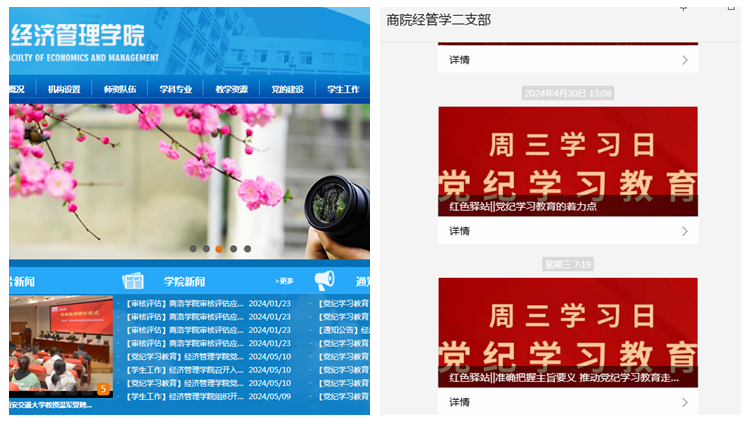 開設(shè)一個“黨紀(jì)學(xué)習(xí)教育”專欄。學(xué)院黨委按照黨紀(jì)學(xué)習(xí)教育方案部署,指導(dǎo)學(xué)院各宣傳媒體平臺開設(shè)“黨紀(jì)學(xué)習(xí)教育”專欄,經(jīng)濟(jì)管理學(xué)院網(wǎng)站開設(shè)“黨紀(jì)學(xué)習(xí)教育”專欄,已推送黨紀(jì)學(xué)習(xí)教育學(xué)習(xí)鏈接、學(xué)習(xí)卡片30余條;學(xué)院網(wǎng)站新聞報道學(xué)院黨紀(jì)學(xué)習(xí)教育專題新聞近10篇;各黨支部利用支部自媒體公眾號推送黨紀(jì)學(xué)習(xí)教育新聞報道50余次;學(xué)生第二黨支部微信公眾號平臺開設(shè)了黨紀(jì)學(xué)習(xí)教育“周三學(xué)習(xí)日”專欄,每周三定期發(fā)布學(xué)習(xí)內(nèi)容,深入發(fā)揮互聯(lián)網(wǎng)+黨建的育人功能與學(xué)習(xí)效應(yīng)。