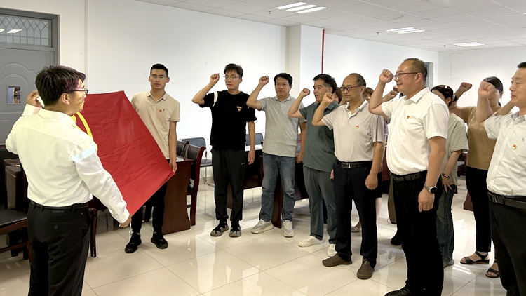 在郭瑾的帶領(lǐng)下,全體黨員同志重溫入黨誓詞。鏗鏘有力的誓言回蕩在會(huì)議室,激勵(lì)著每一位黨員不忘初心、牢記使命,繼續(xù)為黨和人民的事業(yè)努力奮斗。