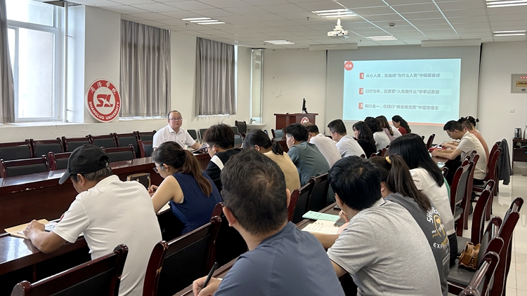 為推動(dòng)黨紀(jì)學(xué)習(xí)教育走深走實(shí),7月1日,副校長(zhǎng)郭瑾以“不忘初心,筑牢忠誠(chéng),以?shī)^斗姿態(tài)共繪學(xué)校事業(yè)新篇章”為題為經(jīng)管學(xué)院教工第一黨支部黨員講授專題黨課。經(jīng)濟(jì)管理學(xué)院黨政班子成員,科級(jí)以上黨員干部,系主任及教工第一黨支部全體黨員參加學(xué)習(xí)活動(dòng)。