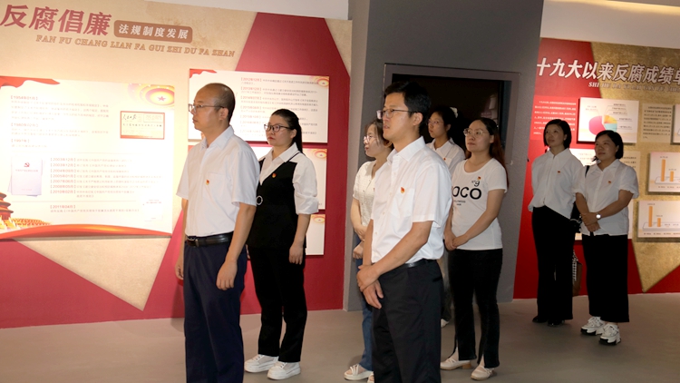 活動(dòng)中,大家在講解員引導(dǎo)下,依次參觀學(xué)習(xí)了“旗幟引領(lǐng)、自我革命、以案為鑒、警鐘長鳴、建設(shè)清廉商洛”五個(gè)版塊內(nèi)容,學(xué)習(xí)了黨和國家領(lǐng)導(dǎo)人關(guān)于黨風(fēng)廉政建設(shè)的論述、建黨以來的反腐歷程、黨紀(jì)政紀(jì)法規(guī)和近年來反腐倡廉工作成果。從習(xí)近平總書記歷次來陜考察重要講話重要指示精神到一樁樁腐敗案例、一份份懺悔書,再到中央反腐的堅(jiān)定決心,特別是通過典型案例和腐敗現(xiàn)象深層剖析等,場景模擬教育形式直觀、生動(dòng),感染力強(qiáng),全體黨員干部深刻理解了廉政建設(shè)的重要性和必要性,有效樹牢了“不敢腐、不能腐、不想腐”的理念,進(jìn)一步樹牢了廉潔自律的堅(jiān)定信念。
