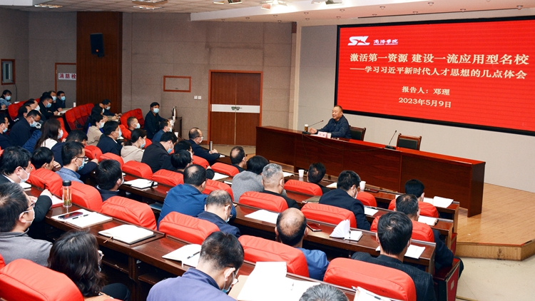 鄧理在報告中以《激活第一資源建設一流應用型名?!獙W習習近平新時代人才思想的幾點體會》為題,圍繞“正確認識是前提;遵循制度是基礎;德才兼?zhèn)洹⒁缘聻橄仁窃瓌t;用心尊重是關鍵;人人皆可成才、人人盡展其才是目的”等五個方面,詳細闡述了習近平總書記關于新時代人才工作的重要論述重要指示精神,針對如何激發(fā)人才創(chuàng)新活力,為我校一流學院建設提供有力的人才支撐作出了具體指導。