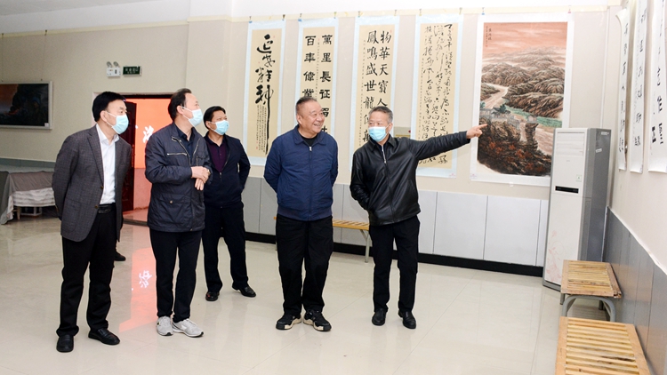 報告結束后,鄧理在張志昌、彭虎軍等的陪同下,前往圖書館藝術學院展廳參觀了我?!芭喔T魂廉潔育人”廉政文化藝術作品展。
