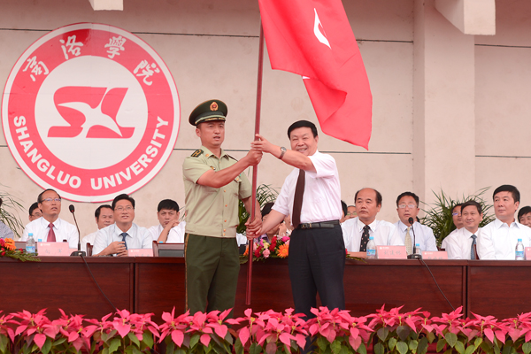 9月7日上午,我校隆重舉行2013級新生開學(xué)典禮暨軍訓(xùn)動員大會。武警商洛支隊參謀長向軍,商洛供電局副局長趙紅強,商洛聯(lián)通副總經(jīng)理陳安民,校領(lǐng)導(dǎo)張景書、劉建林、左曉民、王思懷、陳永莊、魏書堂出席了大會。校黨委書記張景書向承訓(xùn)教官授2013級學(xué)生軍訓(xùn)團團旗,黨委副書記、校長劉建林做了重要講話。大會由黨委副書記左曉民主持