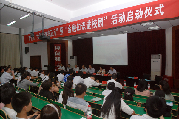9月11日下午,商洛市“金融知識普及月”暨“征信知識進(jìn)校園”活動啟動儀式在我校舉行,本次活動由我校與人民銀行商洛市中心支行聯(lián)合舉辦。校黨委副書記左曉民,人民銀行西安分行征信處處長章紅、法律處調(diào)研員張曉蘭,商洛市政府副秘書長全玉民,人民銀行商洛支行黨委書記、行長馬小明,黨委委員、副行長郭增戰(zhàn)及各商業(yè)銀行相關(guān)負(fù)責(zé)人,各系輔導(dǎo)員、貸款學(xué)生代表參加了啟動儀式。儀式由我校學(xué)生處處長石啟英主持