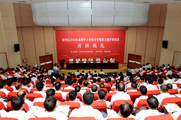 8月18日上午,由我校繼續(xù)教育學(xué)院承擔(dān)的商州區(qū)2014年暑期中小學(xué)校長管理能力提升研修班正式開班。校長劉建林、校紀(jì)委書記王思懷、繼續(xù)教育學(xué)院院長任少儉,商州區(qū)委副書記、區(qū)長張國瑜,副區(qū)長王昕,商州區(qū)教育體育局局長張余良、黨委書記王建軍出席了開班典禮。王思懷主持開班典禮儀式